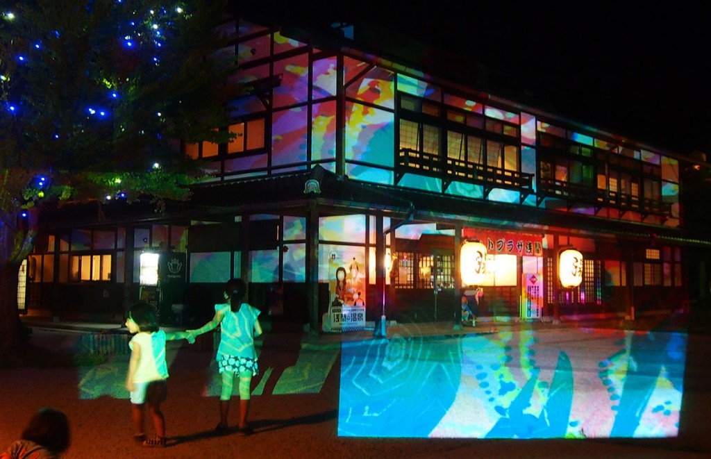 オープニングイベントとして、7/12(金)~14(日)は、これも浅間温泉初のプロジェクションマッピングが、日帰り温泉施設「ホットプラザ浅間」の建物を彩ります。