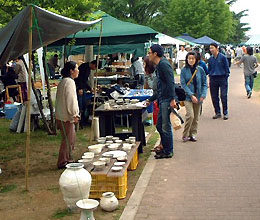 全国から、陶芸・ガラス・木工・金属・染織等のアーティストが集まり、250ものブースが立ち並びます。近年は千人もの作家が応募し、数倍の競争率から選考されるためレベルが高く、時期的にもさわやかな季節で、会場の公園の雰囲気ともマッチしたイベントとして人気があり、5万人以上の人が詰めかけます。