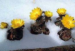 日本の原風景が残る松本市の北部に、信州の長く厳しい冬の終わりと春の訪れを告げる福寿草が、土手に数十万株も自生しています。特に、残雪がある時に見られる、雪の中から顔をのぞかせる姿は、感動的で、写真家の方にも人気があります。