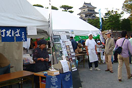 国宝松本城の公園で、長野県内や全国から集まった30店ほどの蕎麦打ち・蕎麦屋がブースを出し、一律500円で蕎麦の食べ比べができます。毎年10万人以上が来る一大イベントで、人気の蕎麦ブースには行列ができることもあります。