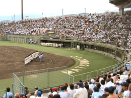 松本市野球場は温泉街からも徒歩5分ほどの距離にあり、夏の高校野球長野大会ともなれば、応援の声援や太鼓の音が温泉街にも響き渡ります。