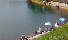 浅間温泉から車で10分の美鈴湖はヘラブナ釣りのメッカです。