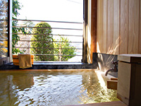 お好きな時に自由に入れる源泉掛け流しの客室半露天風呂。