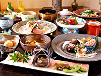 旬の素材、主人が作る季節の食材を使用した遊び心溢れる創作会席料理。